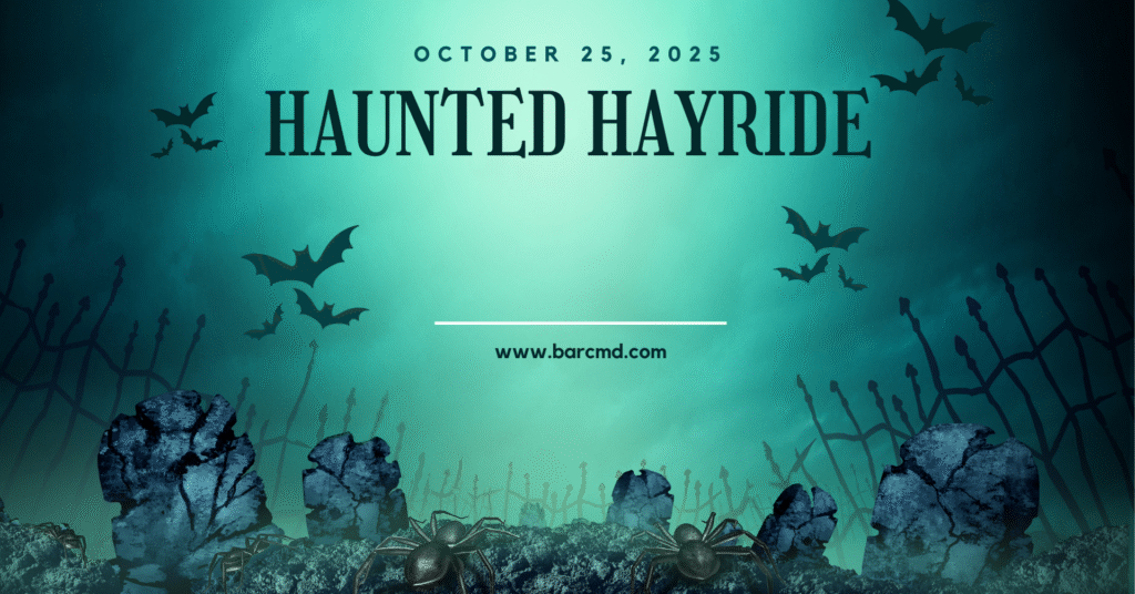 Hayride sponsored by BARC. Board in front of the Martin’s Creek parking lot. No advance tickets sold. Purchase tickets at the event only. Rides price is $3 per person. CASH ONLY.